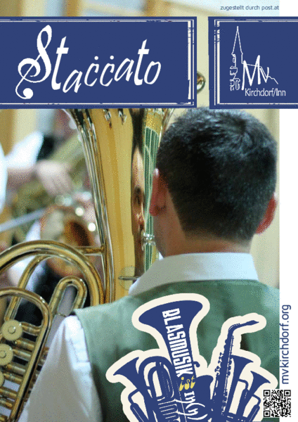 Die Musikerzeitschrift "Staccato" berichtet wieder über aktuelle und vergangene Ereignisse beim MV Kirchdorf. Auf musikalische und gesellige Anlässe wollen wir zurück schauen und einen Einblick in das Vereinsleben geben. Viel Spass beim Lesen.